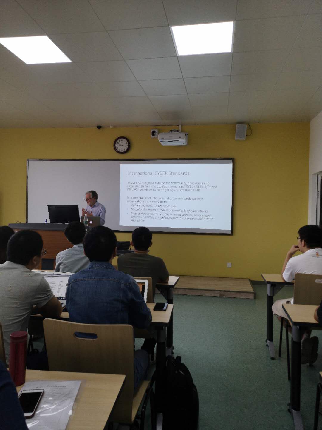 Humphreys教授用他在信息安全和国际标准化领域的长久经验和深刻认识,为pg娱乐电子官网师生带来了一场内容丰富的学术报告,不仅拓宽了同学们的国际视野,也加深了大家对网络空间安全的认识。报告在热烈的掌声中结束。