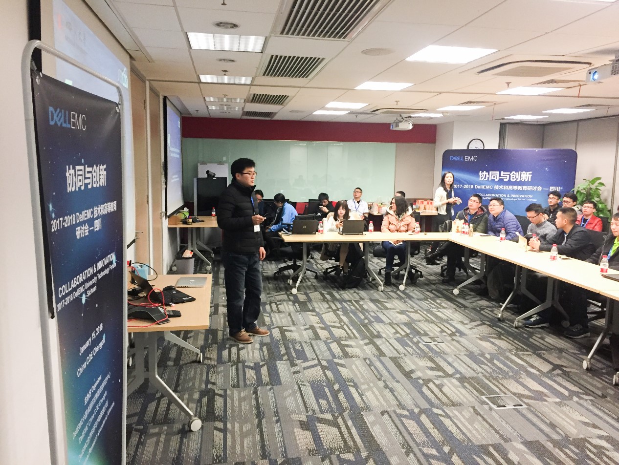 下午13:00,全体人员参与了“协同与创新-2017-2018 Dell EMC技术和高等教育研讨会”,来自DellEMC和各高校的专家给大家分享AI相关的前沿技术以及行业热点。pg娱乐电子官网黄诚老师在本次研讨会上为大家分享了将基于机器学习的恶意域名检测技术,引起了大家的广泛的兴趣与讨论。