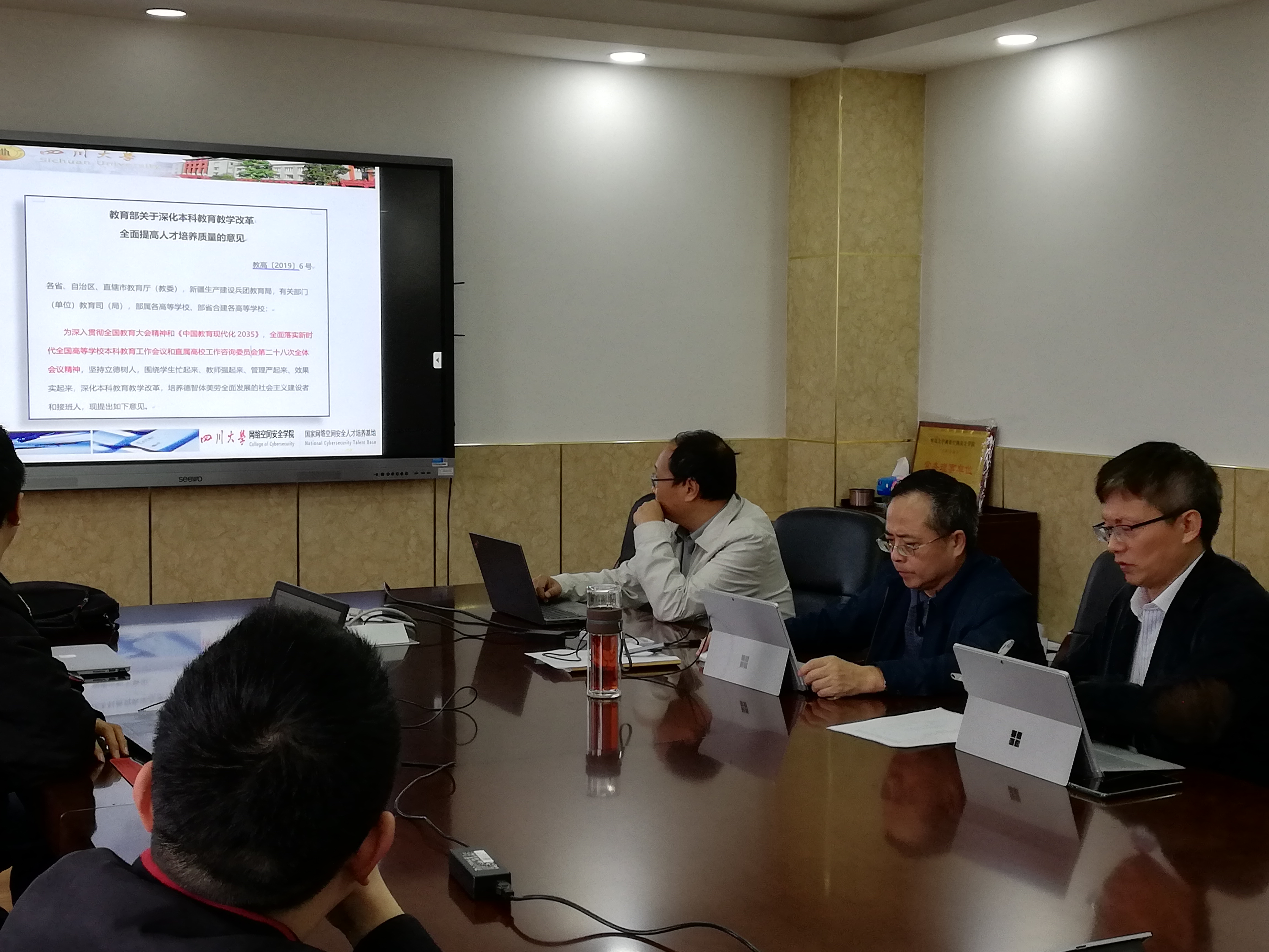 首先,方老师传达了《教育部关于深化本科教育教学改革全面提高人才培养质量的意见》的文件精神,主要从严格教育教学管理、加强基层教学组织建设、完善教师培训与激励体系、加强组织保障等方面进行了介绍,并结合自己的工作经验提出了思考和建议。