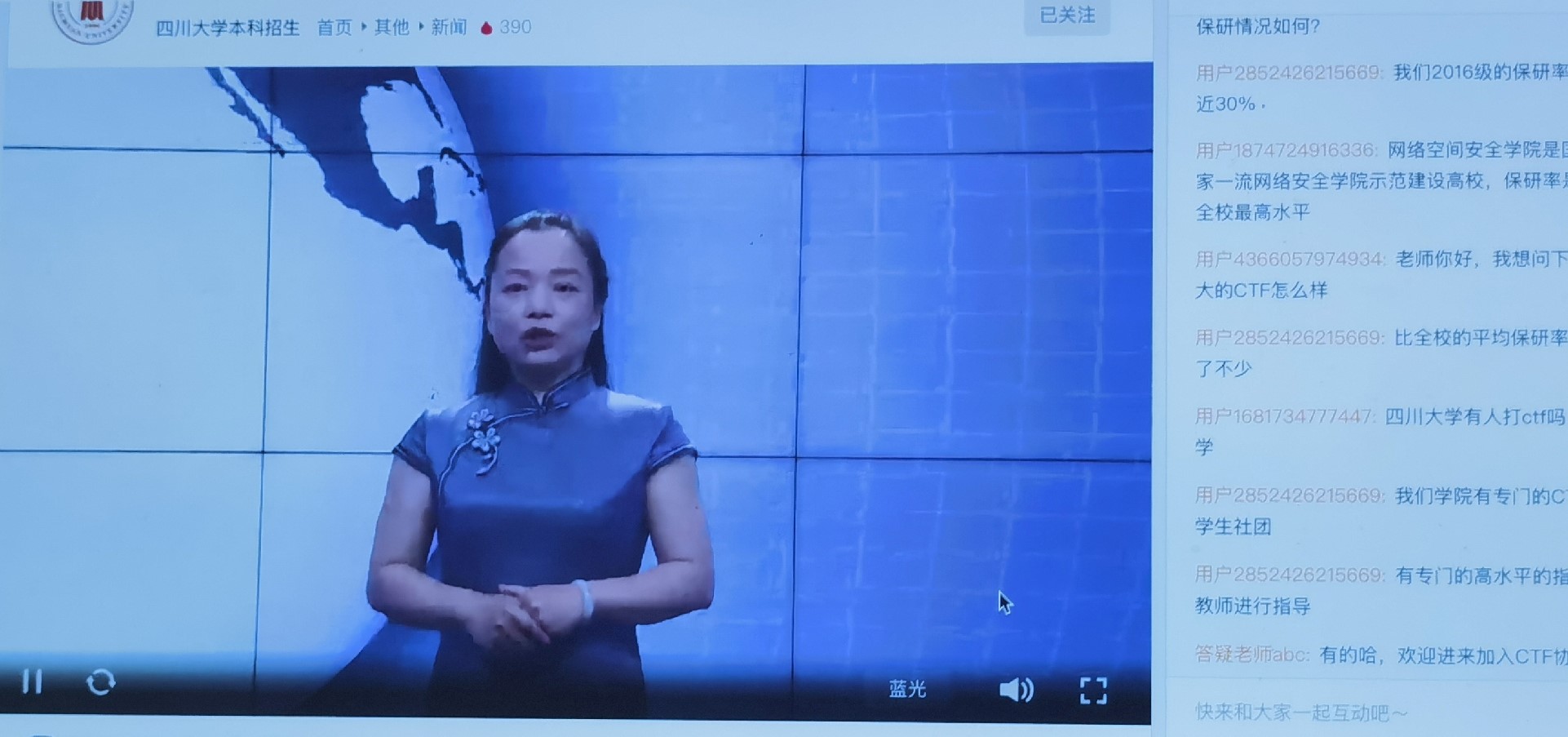 直播过程中,针对同学们的积极提问,老师们也做出了相应地解答,增强了本次活动的趣味性和现实意义。通过本次活动,同学们认识到,在当前的社会背景下,网络空间已成为海、陆、空、天之外人类活动的“第五空间”。网络安全对国家安全牵一发而动全身,已成为国家安全体系的重要组成部分。最后,伴随着川大宣传片的播放,本次活动圆满结束。