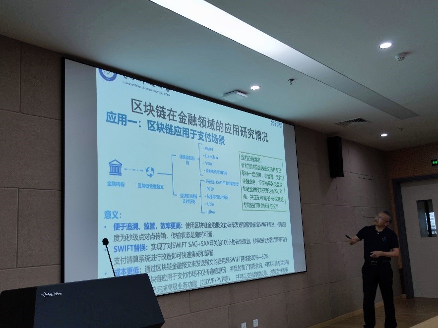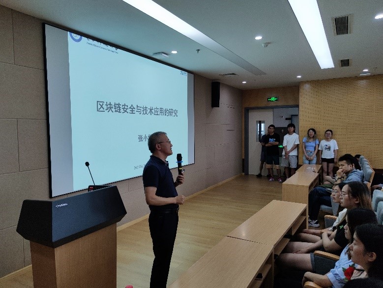 接着,在前面理论研究成果的基础上,张教授举例说明了区块链安全相关技术应用的一些典型案例,表明了我国在区块链及其安全研究领域所占的优势,激起了老师和同学们强烈的民族自豪感。