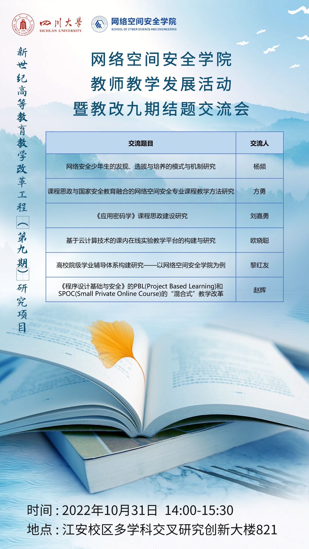 教学改革是教育改革中至关重要的组成部分,通过教改项目的申报和研究,引导教师对本科教学课堂革命及教学模式创新的深入思考,通过项目在具体教学工作中的实践应用,产出具有彰显度的教学成果,从而不断提高pg娱乐电子官网整体的教育教学水平,为培养高水平网安人才奠定了坚实的基础。