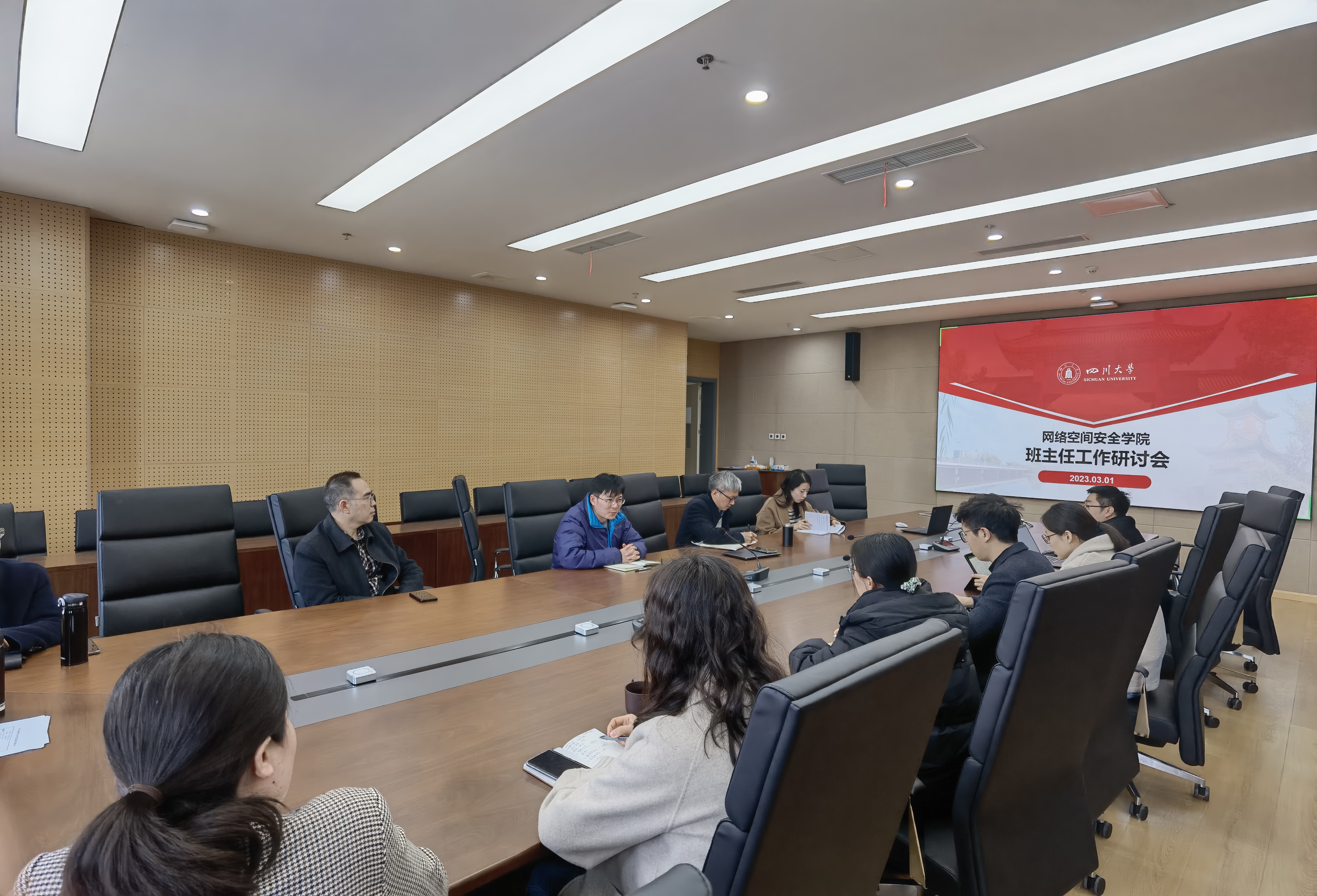 为贯彻“新学期本科教学与学生工作协同工作会”会议精神,以班主任工作作为加强学工、教务双向联动的突破口之一,推进班主任工作,落实班主任制度,明确班主任职责,学院于2023年3月1日下午在江安校区多学科交叉研究创新大楼821会议室举行了班主任工作研讨会,学院副院长杨频、党总支副书记兼副院长张意、2021级、2022级全体班主任、全体辅导员及教学科相关工作人员出席了本次会议,会议由副院长杨频主持。