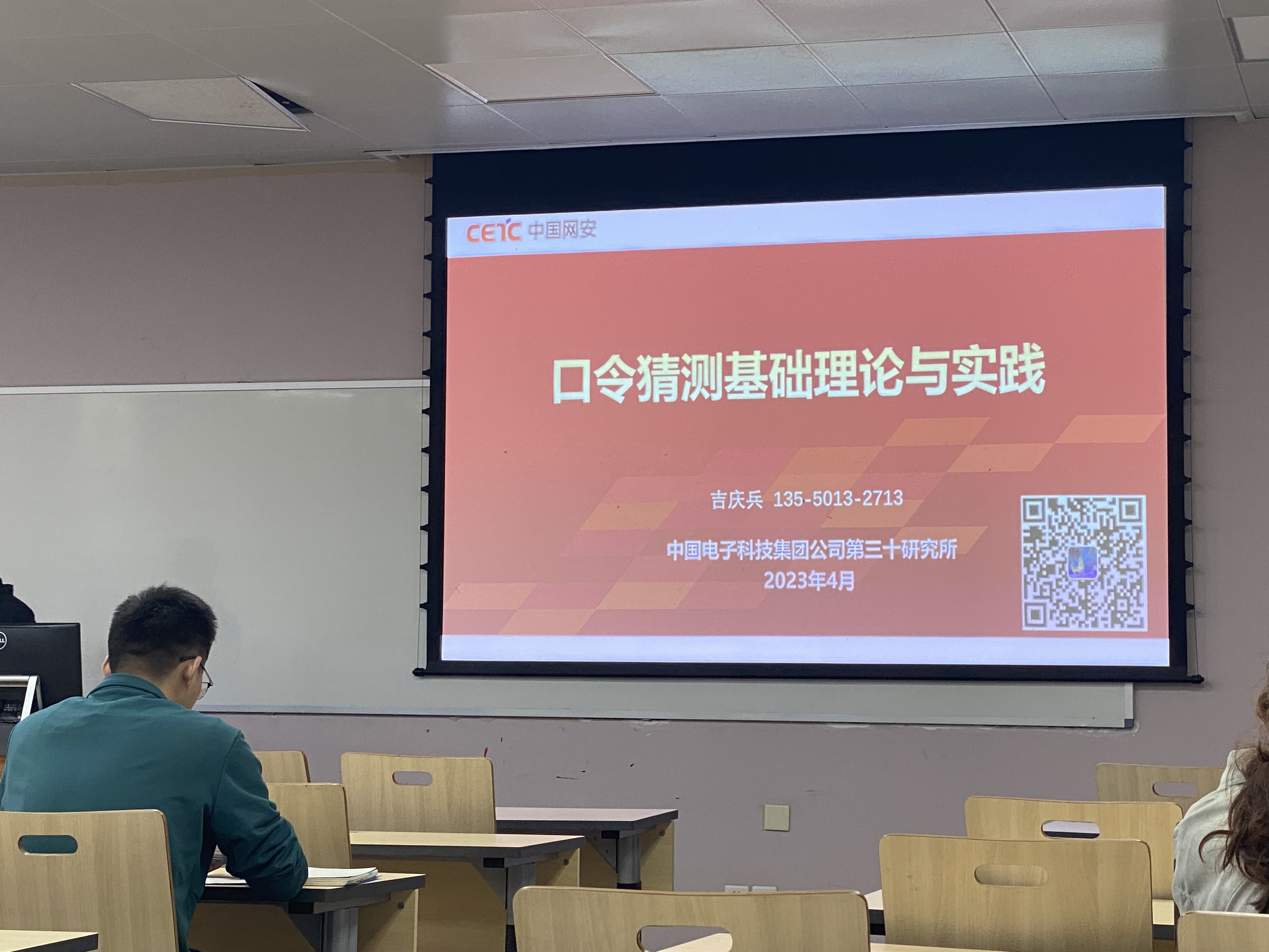 吉研究员针对报告主题与同学们进行了深入的探讨和交流,加深了同学们对密码对抗理论与实践的认识,经过本次讲座的学习大家受益匪浅。在同学们热烈的掌声中,本次讲座圆满结束。