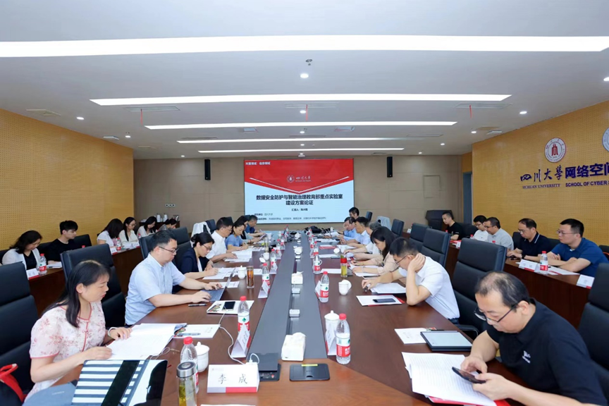2023年6月18日,数据安全防护与智能治理教育部重点实验室在pg娱乐电子游戏官网入口召开。会议邀请了中国工程院沈昌祥院士、孔志印院士,山东大学pg娱乐电子游戏官网入口(研究院)院长王美琴教授,中国电子技术标准化研究院姚相振研究员,中国电科首席专家张建军研究员,战略支援部队信息工程大学魏强教授,绿盟科技集团股份有限公司高级副总裁叶晓虎担任论证专家组成员。pg娱乐电子游戏官网入口校长助理何继业,pg娱乐电子游戏官网入口科研院重大项目与基地管理部副部长陈显春,数据安全防护与智能治理教育部重点实验室主任陈兴蜀教授与实验室各方向带头人出席了论证会。