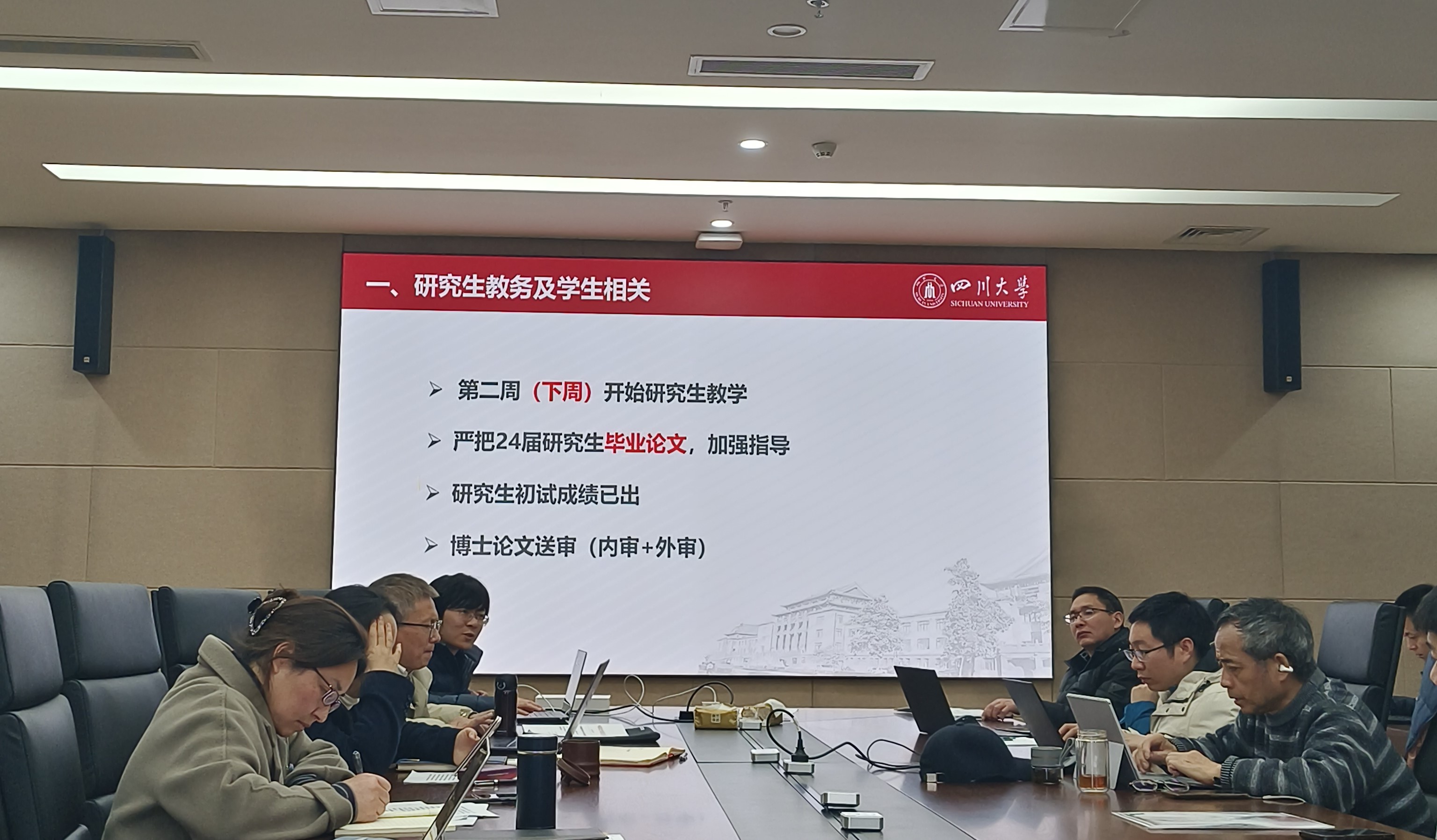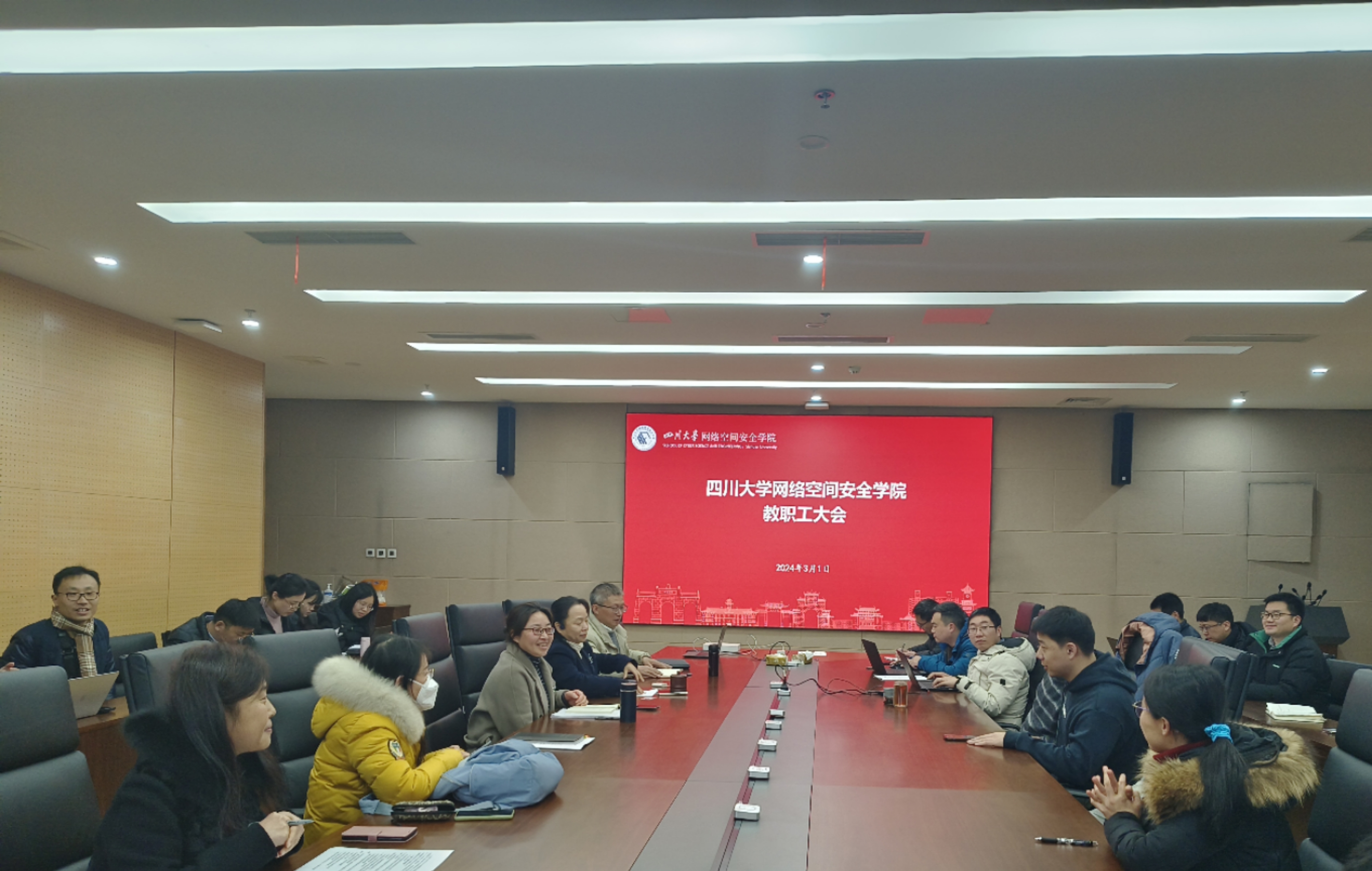 2024年3月1日下午,pg娱乐电子官网在江安校区多学科交叉研究创新大楼821会议室召开学院新学期工作布置会,学院领导班子成员和全院教职工参加大会,会议由党总支书记秦燕主持。