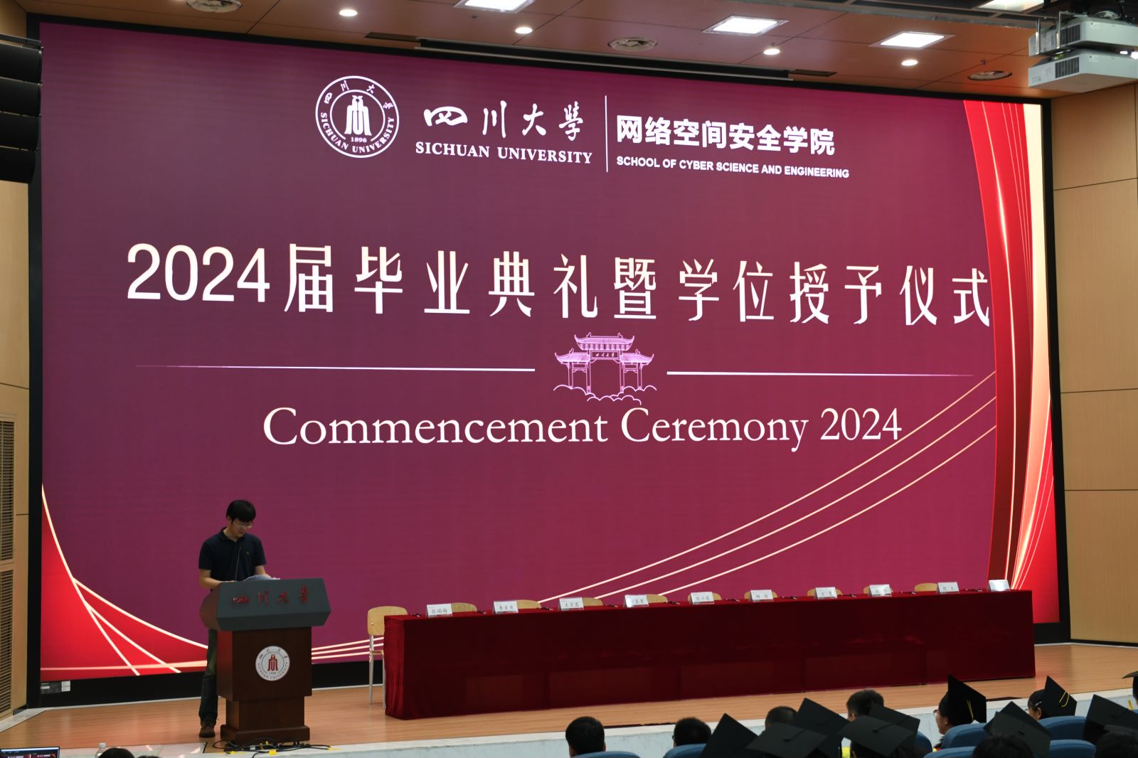 2024年6月20日下午,pg娱乐电子游戏官网入口2024届学生毕业典礼暨学位授予仪式于江安校区水上报告厅隆重举行。学院党总支书记秦燕、院长陈兴蜀、副院长杨频以及多位教师代表出席活动。