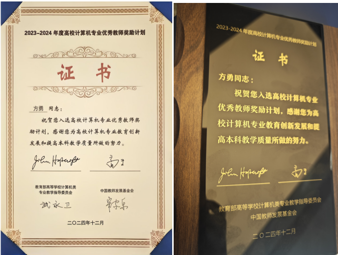 12月7日,第六届中国计算机教育大会(CECC)在厦门召开,会上举行了2023-2024年度“高校计算机专业优秀教师奖励计划”颁奖仪式。经高校推荐、视频提交、进校听课、会议审核等近一年的评审,55名教师从147名参评者中脱颖而出,pg娱乐电子游戏官网入口方勇教授成功入选,至此pg娱乐电子游戏官网入口共有2位教师入选该奖励计划。