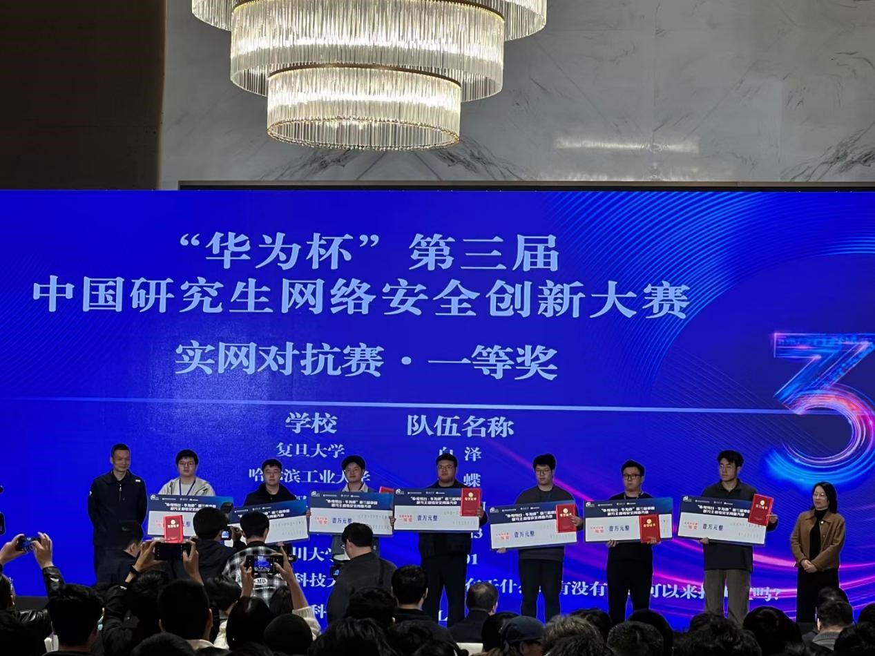 11月16日至17日,“中国网谷·华为杯”第三届中国研究生网络安全创新大赛决赛在武汉市国家网络安全人才与创新基地举行,经过激烈角逐,pg娱乐电子游戏官网入口0x401战队(团队成员:蒲奥、冯霞、武楷洋、潘炜林,指导教师:黄诚)荣获实网对抗赛一等奖(该奖项全国仅7项),黄诚老师获得优秀指导老师称号,pg娱乐电子游戏官网入口获优秀组织奖。该成绩均创我校在本赛事中的历史最好成绩。