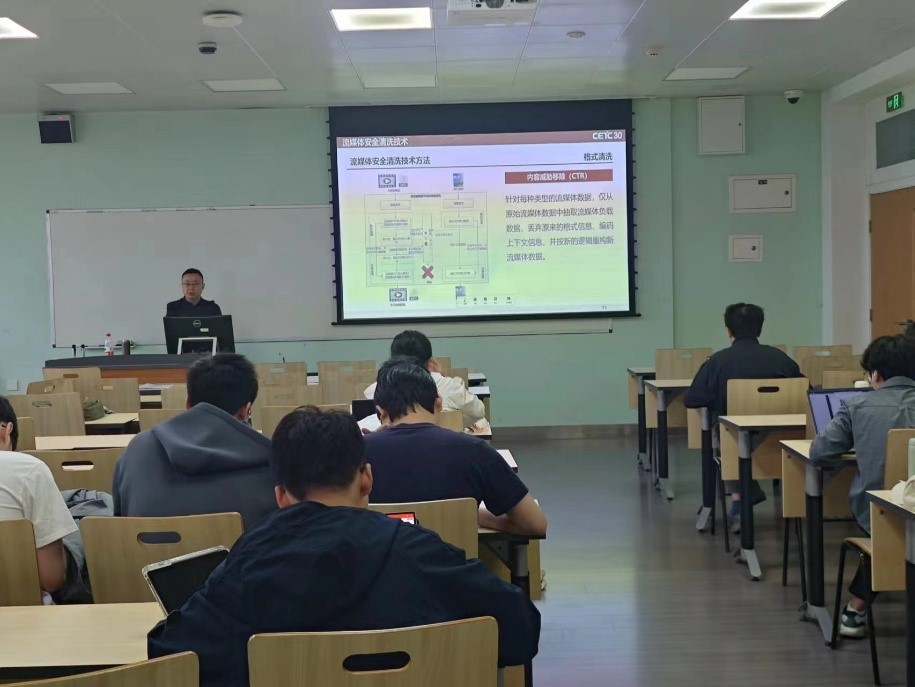 近期中国电子科技集团公司第三十研究所首席专家姜永广老师为pg娱乐电子官网电子信息专业学位硕博士生开展了题为“流媒体安全防护技术”的专题讲座。本次讲座由pg娱乐电子游戏官网入口党总支副书记兼副院长张意教授主持。