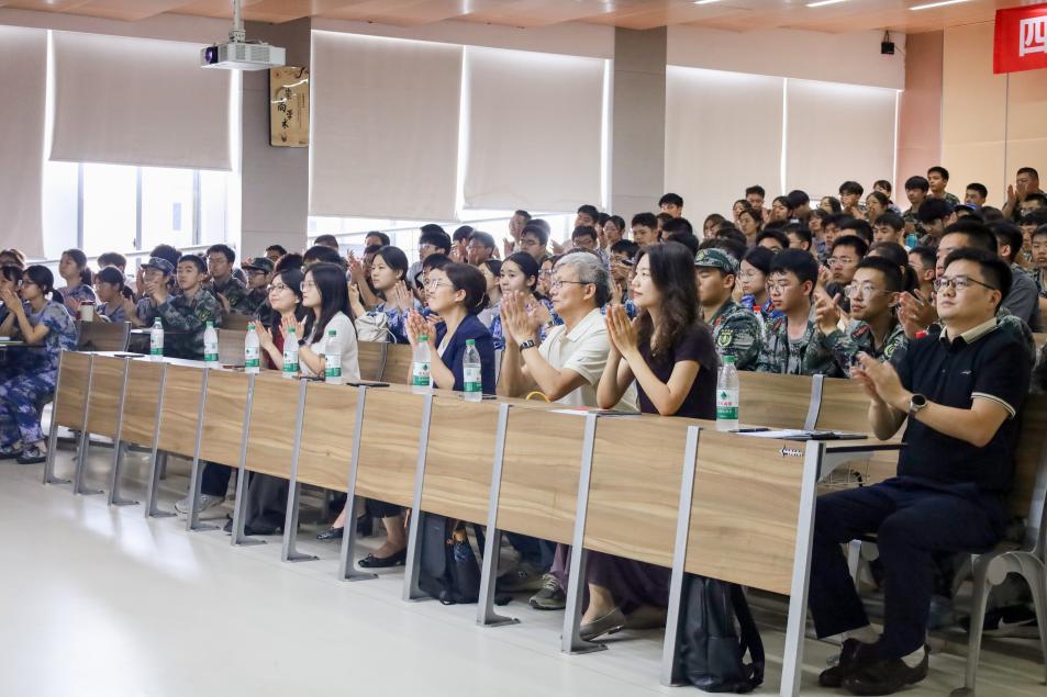 最后,新生代表孙韵依发言。她代表全体新生向学院领导与教师致以诚挚感谢,并表达了对即将展开的大学生活的向往与期盼。围绕“青春”“使命”“创新”三个关键词,她以坚定而热情的语言,号召同学们铭记历史、立足当下、展望未来。她以九三阅兵中“召之即来、使命必达”的信念与大家共勉,强调“没有网络安全就没有国家安全”的时代重任,并引用李大钊先生的名言,呼吁全体新生以青春之名、凭专业之力,共同守护清朗网络空间,积极投身数字中国建设。