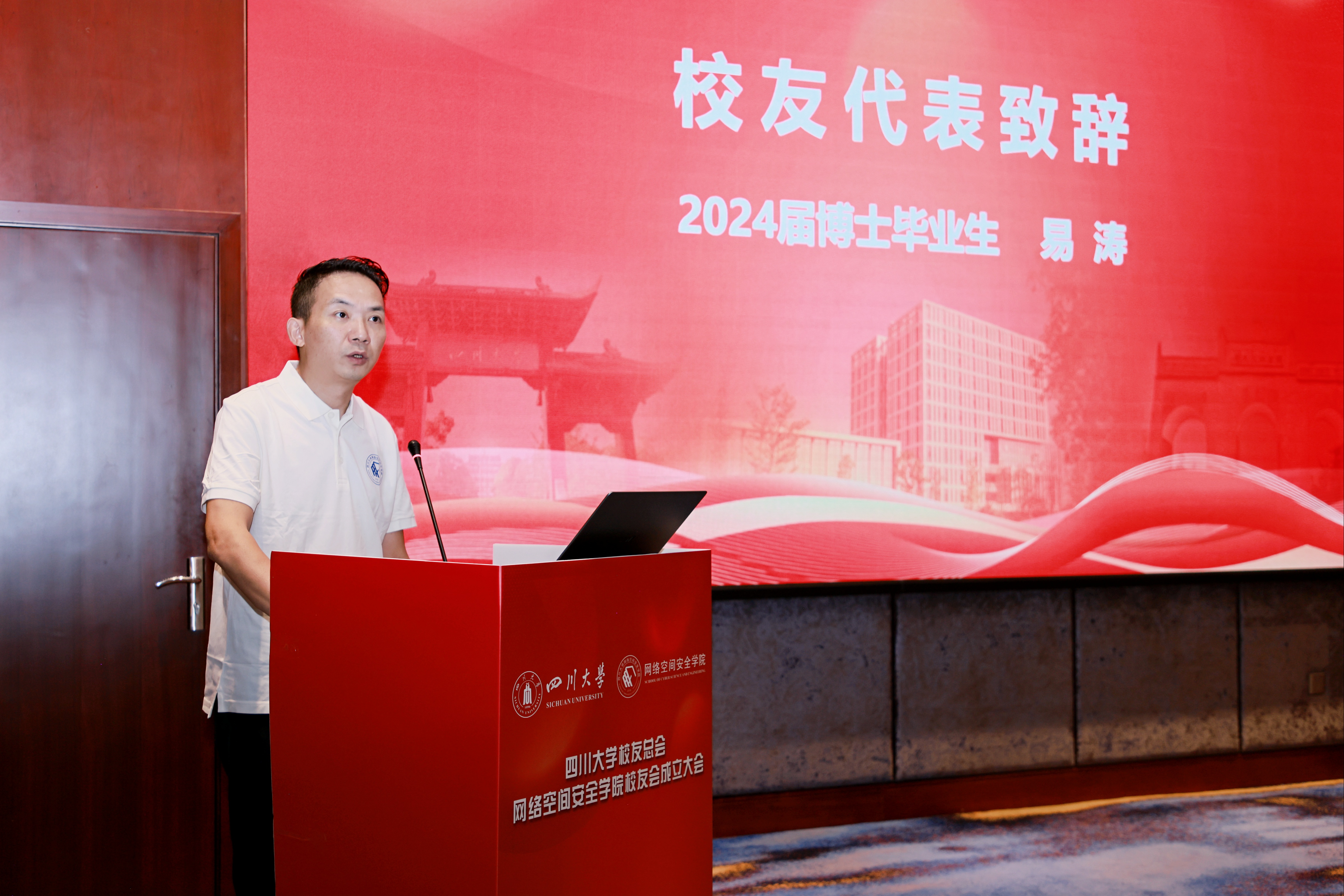 校友代表,校友会常务副会长,2024届毕业博士生易涛表示将办好交流活动等工作,继续服务母校发展,将母校“海纳百川 有容乃大”的校训精神传递下去。