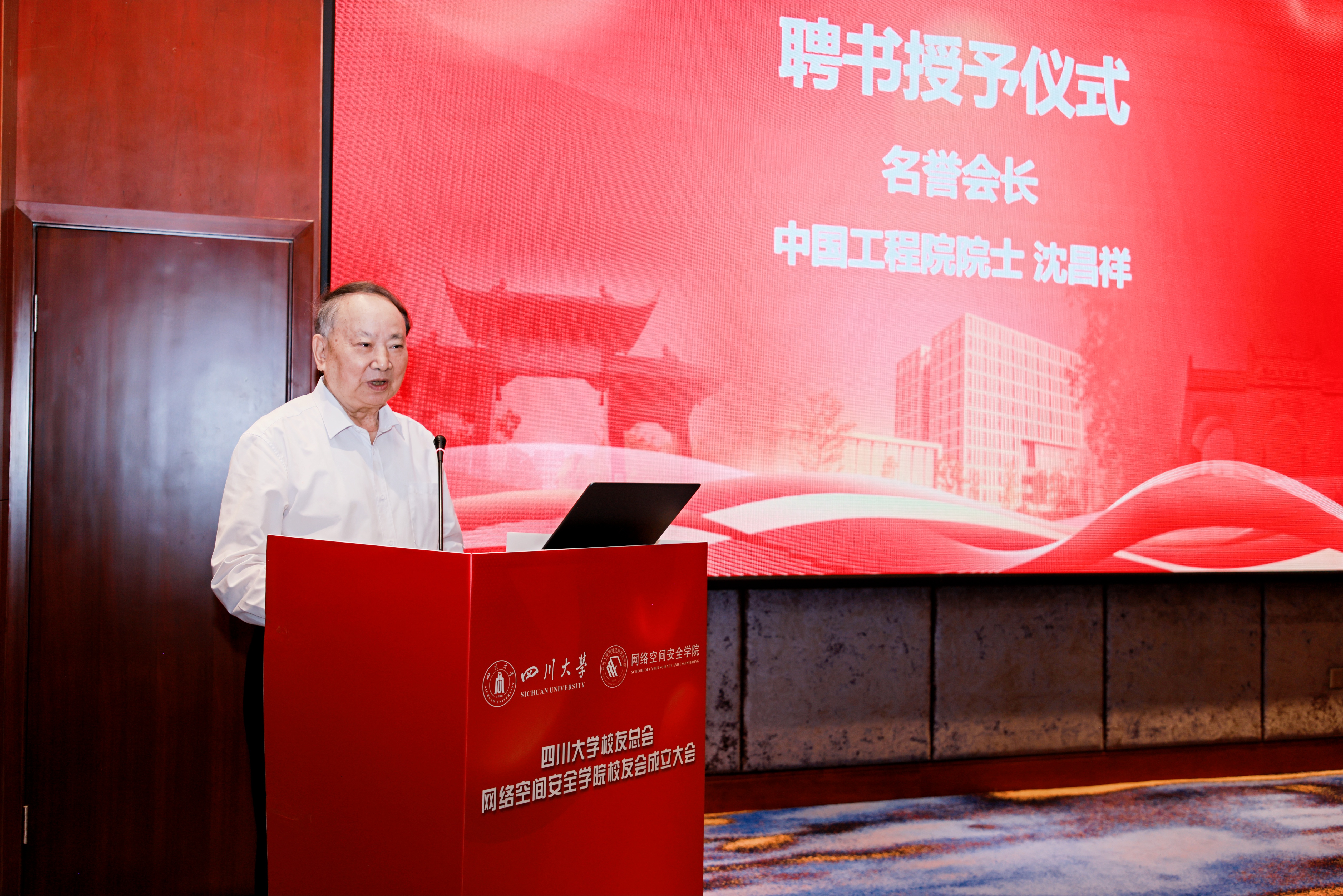 学院校友会名誉会长,中国工程院院士沈昌祥在致辞中表示校友是网络安全防线的重要力量,希望校友将个人所长融入网络安全事业,成为守护国家网络空间的坚实纽带。