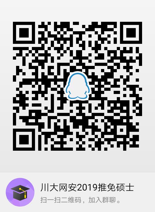 报考者请加入“川大网安2019推免硕士”QQ群(群号:883408699,也可扫描以下二维码进入),该群需实名认证,认证方式是“姓名+学校”。