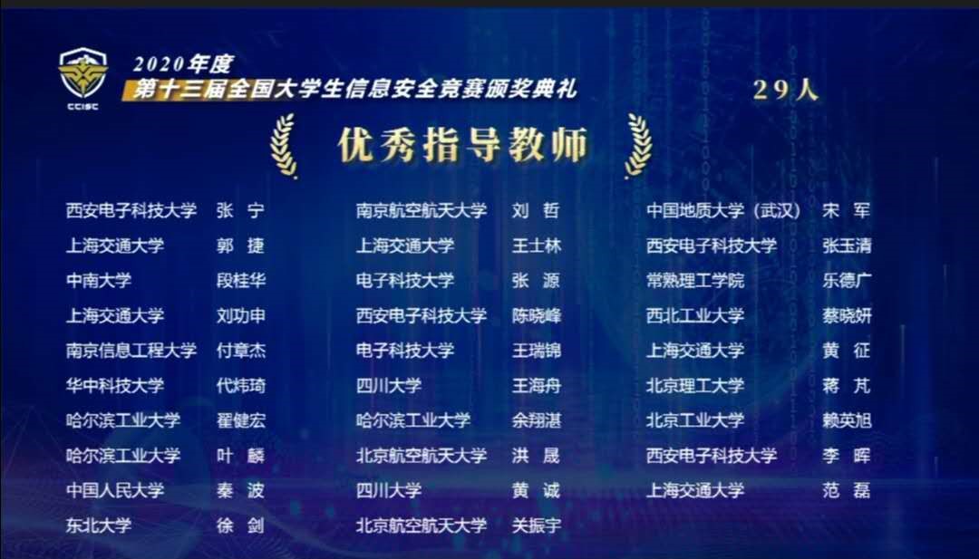 2020年第十三届全国大学生信息安全竞赛作品赛pg娱乐电子游戏官网入口获奖名单