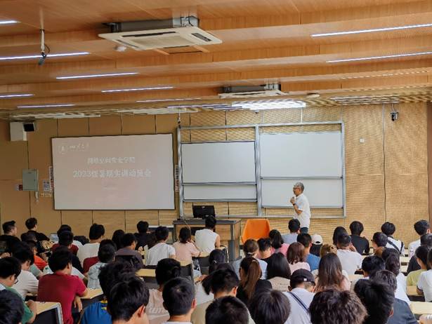 为增强学生创新实践动手能力,提高毕业生就业竞争力,pg娱乐电子官网于7月15日下午在pg娱乐电子游戏官网入口江安校区综合楼C203教室举行2023级本科生暑期实训动员会。pg娱乐电子游戏官网入口副院长杨频、成都知了汇智(西普四川)校企合作中心总监杨宇、四川天融信教育科技有限公司项目经理李志伟、本科教学科科长何露以及2023级全体学生出席了宣讲会,会议由学院副院长杨频主持。