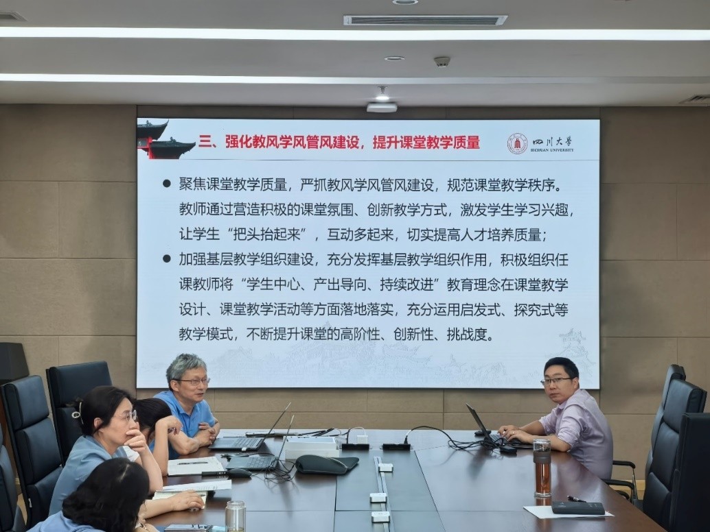 为扎实做好本科教育教学审核评估校内自评整改工作,确保自评自建取得实质性改进成效,实现“以评促建、以评促改、以评促管、以评促强”,5月9日下午,学院在江安校区多学科交叉研究创新大楼821会议室召开了pg娱乐电子游戏官网入口自评整改及迎评准备工作专题会。院党总支书记秦燕、院长陈兴蜀、副院长杨频,学院全体教学老师及管理人员参加了专题会。