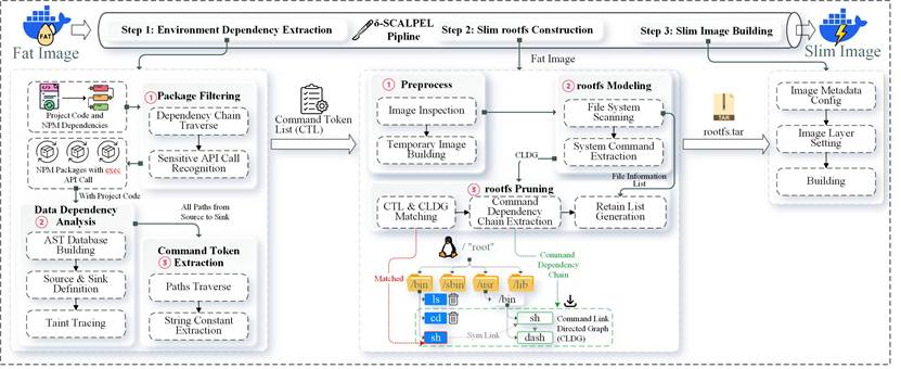 容器化是当前软件开发的主流,它使软件能够跨平台使用,而无需额外配置运行环境。然而,开发人员创建的很多镜像都是冗余的,且包含不必要的代码、包和组件。这种冗余不仅导致镜像臃肿,为传输和存储造成阻碍,而且还增加了攻击面,使得镜像更容易受到安全威胁。黄诚团队在论文《δ-SCALPEL: Docker Image Slimming Based on Source Code Static Analysis》中首次提出基于源代码静态依赖分析的Docker镜像瘦身模型,如上图1所示:通过执行静态代码分析来识别项目源代码中的数据依赖关系,同时构造一个称为命令链接有向图的数据结构来对镜像的文件系统进行建模,保证了镜像瘦身过程的准确性和可靠性。该模型克服了动态方法由于对容器运行时行为的高度依赖而导致的瘦身镜像不可用或不完整问题。实验结果表明,文章所提出的模型在镜像瘦身能力和鲁棒性方面都要优于基线。pg娱乐电子官网为该成果的唯一通讯单位,pg娱乐电子官网2021级博士研究生韩家璇作为第一作者,黄诚副教授担任通讯作者。
