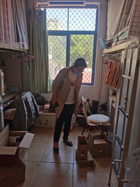 在工作开展过程中,根据学生的要求,学院尽量满足个别同学的“微心愿”,学院领导和辅导员们及时与学生沟通,逐一解决学生提出的合理化需求。如帮助学生倾倒垃圾、帮助学生处理腐烂变质的食品和水果、帮助学生浇花、帮助学生收捡衣物、帮助学生检查床单等寝室用品的清洁等。