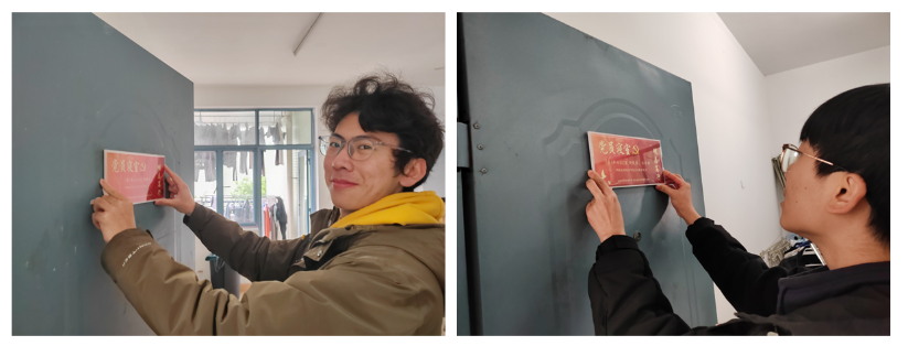 随后,在党员同志的带领下,大家有序参观了模范寝室,将一块块党员寝室门牌郑重地张贴在门上,不仅为寝室增添了一抹亮色,也激励着党员们在日常生活和学习中起先锋模范作用,接受组织和群众的监督考察。