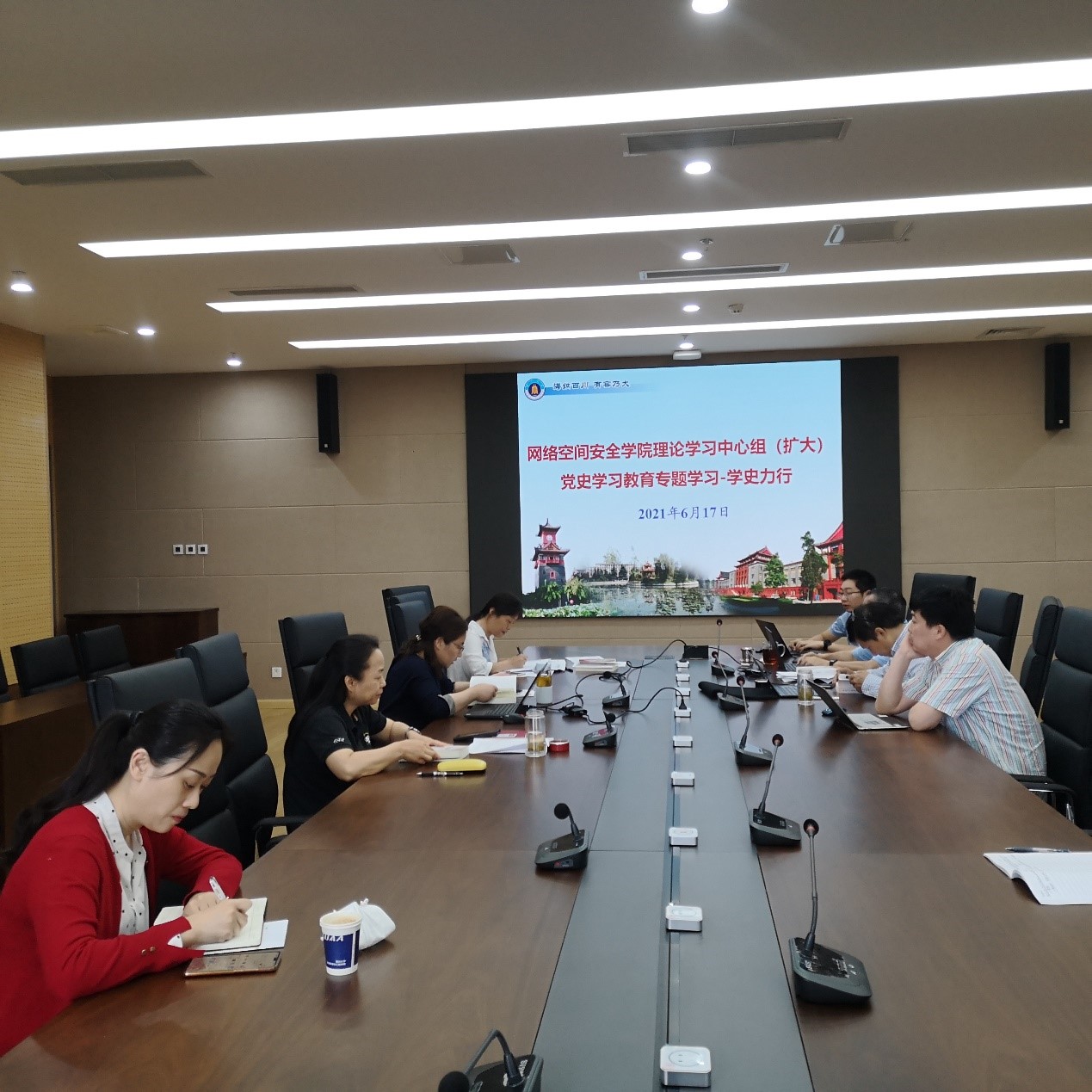 2021年6月17日,pg娱乐电子游戏官网入口理论学习中心组在学院821会议室召开党史学习教育第四次专题学习(扩大)会—学史力行。学院理论学习中心组成员、学院支委委员参加了学习会,会议由学院党总支书记秦燕主持。